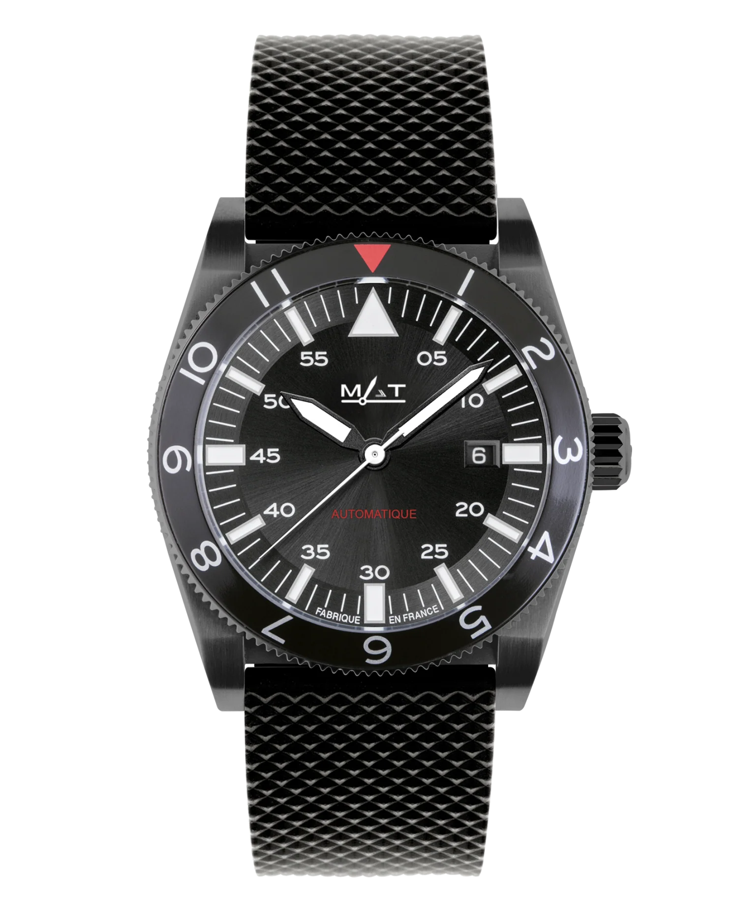 The "gun sunburst" dial is ultra-readable thanks to its large indexes and hour and minute hands coated with white luminescent material (BGW9), which allows reading the time even in darkness and during night flights.