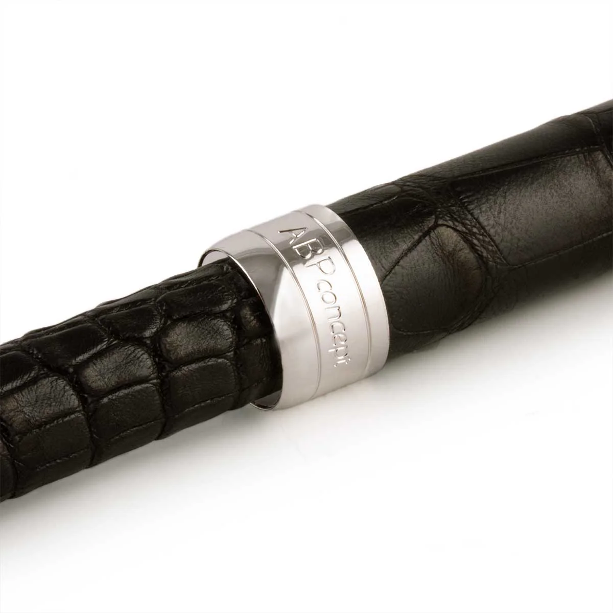 "Essential Black Alligator" Leather rollerball pen – Rhodium steel